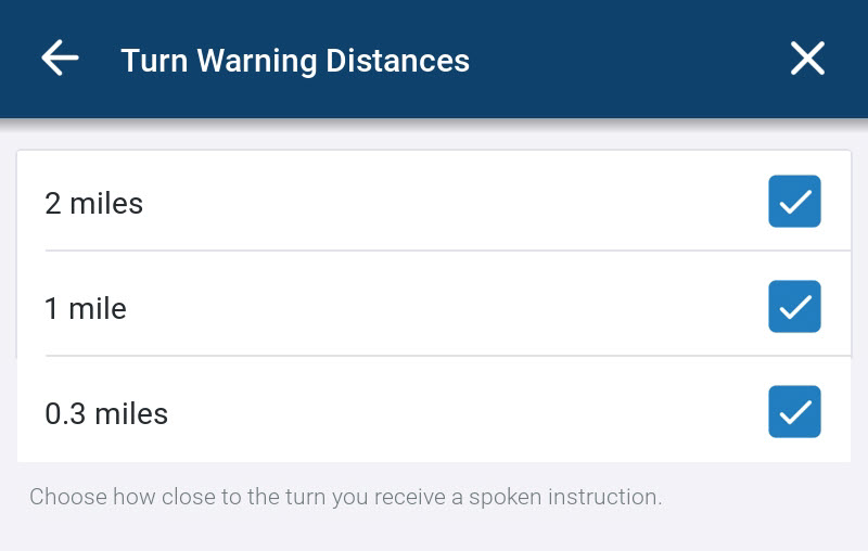 Sie können wählen, wie nah an der Abbiegung Sie gesprochene Anweisungen erhalten.