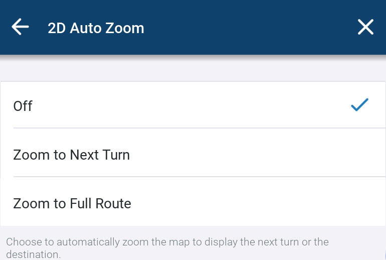 - Automatisches Heranzoomen, wenn Sie sich Ihrer nächsten Abbiegung nähern (Auf nächste Abbiegung zoomen);