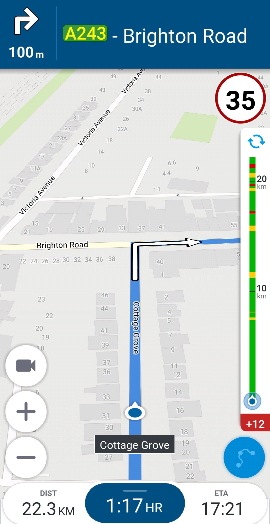 CoPilot kann in der Kartenansicht die Abbiegebeschränkungen anzeigen, um Ihnen zu zeigen, wo sich auf Ihrer Route Abbiegeverbote befinden.