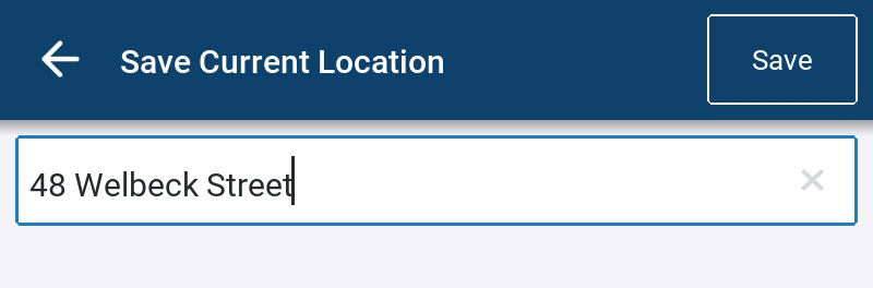 3. Wenn Sie Ihren aktuellen Standort in Ihren Favoriten speichern möchten, tippen Sie auf Aktuellen Standort speichern. Der Bildschirm Aktuellen Standort speichern wird angezeigt.