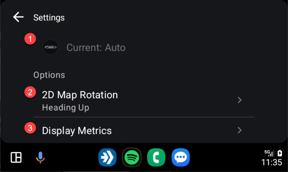 Auf dem Bildschirm von AndroidAuto sind drei Einstellungen verfügbar. Sie können: