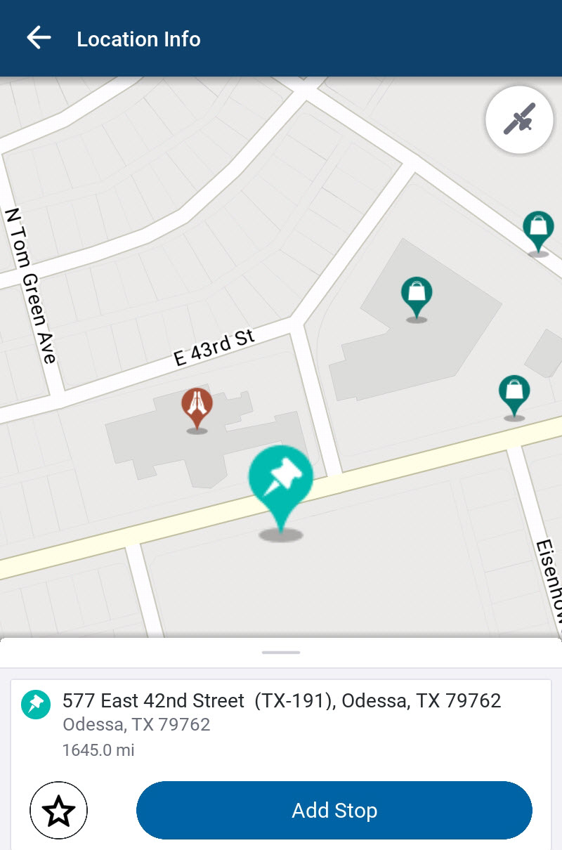 - Wenn der Standort korrekt ist, tippen Sie auf Zwischenstopp hinzufügen, um ihn Ihrer Route hinzuzufügen..