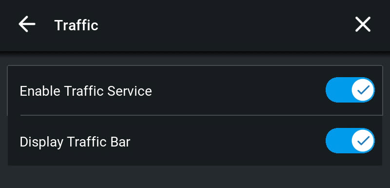 - On the Traffic screen, tap Enable Traffic Service to switch it on.