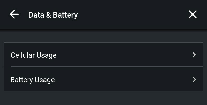 Tap Settings > Data & Battery to display the Data & Battery screen.