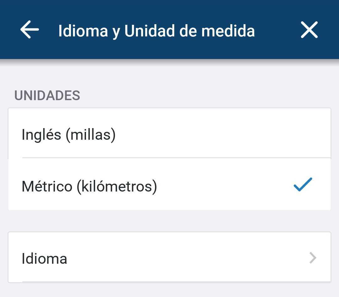 - Selecciona Inglés (millas) o Métrico (kilómetros)