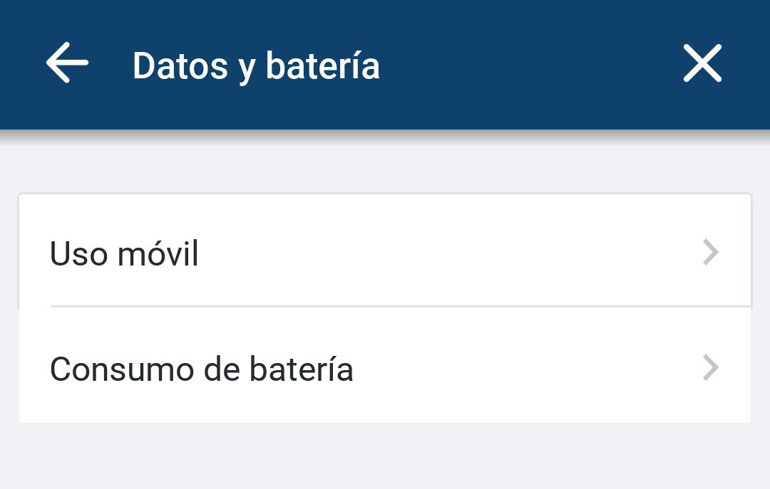 Toca Configuraciones > Datos y Batería para mostrar la pantalla de Datos y Batería.