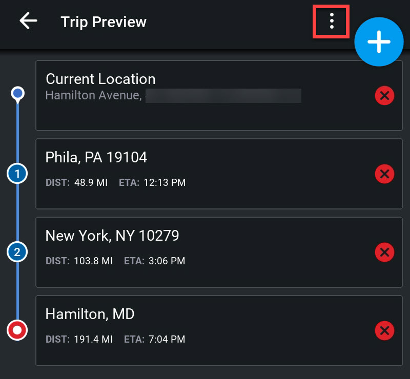 - Sur l'écran Aperçu du voyage, appuyez sur le menu à trois points pour ouvrir les Options de voyage.