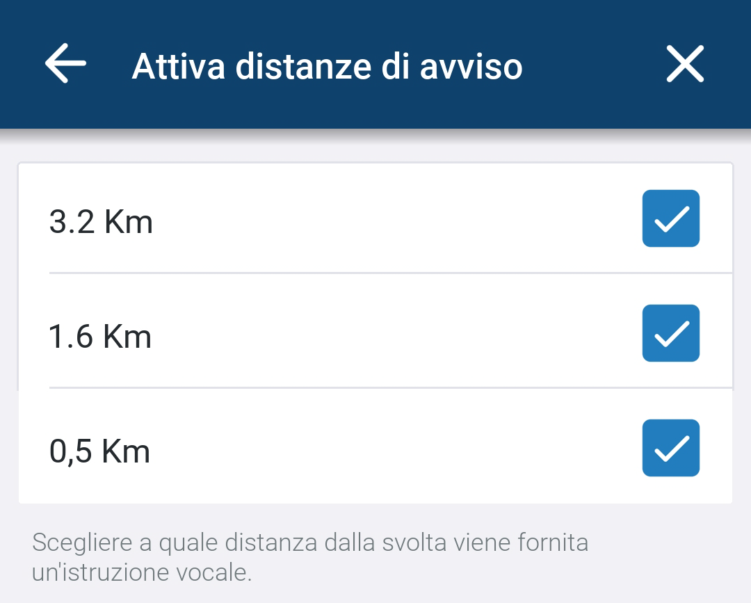 Puoi scegliere quanto vicino alla svolta ricevere istruzioni vocali.