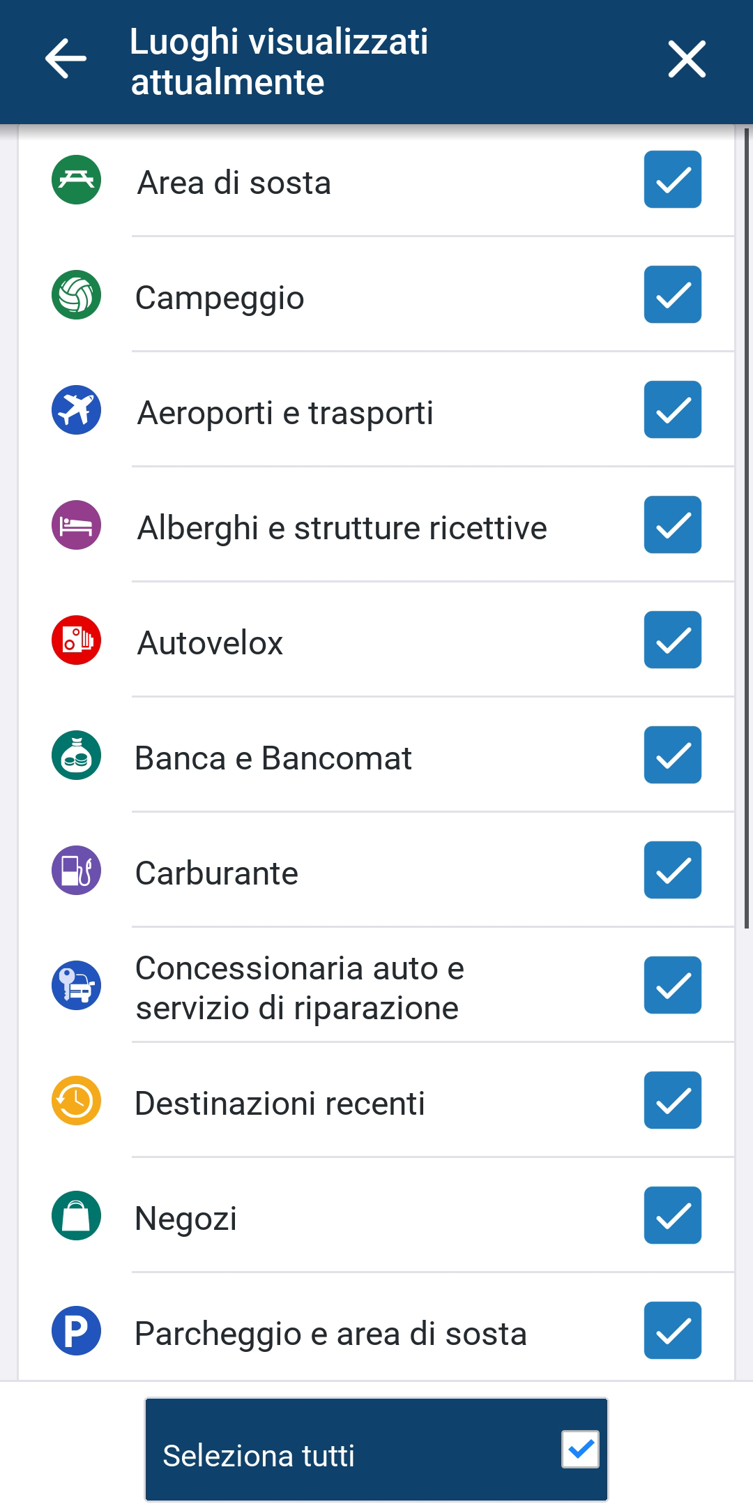 4. Tocca le singole voci per selezionarle o deselezionarle. Puoi toccare Seleziona Tutti per includere/escludere tutte le categorie.