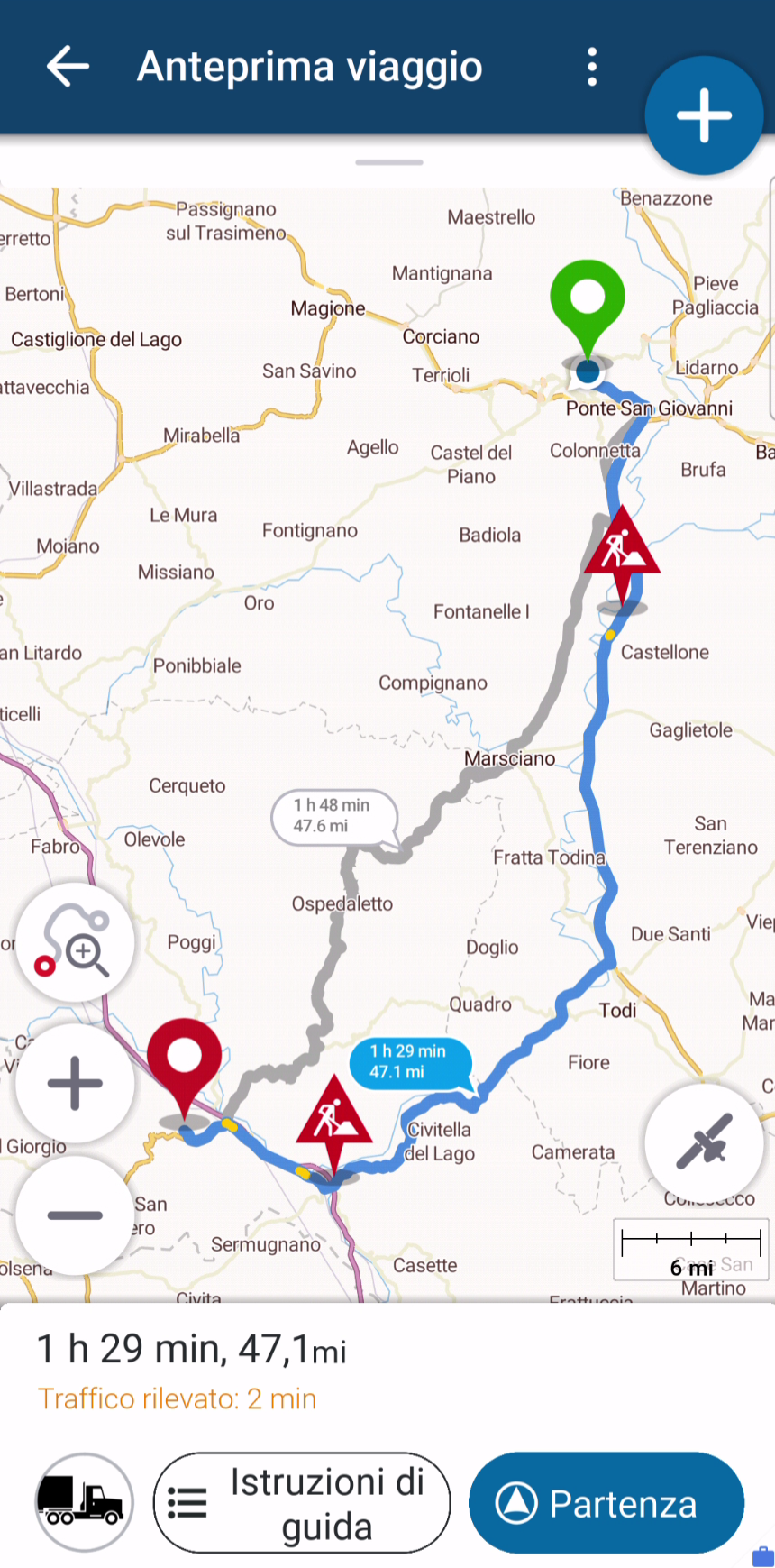 - Se vuoi seguire il percorso alternativo, tocca il pulsante Inizia per avviare la navigazione.