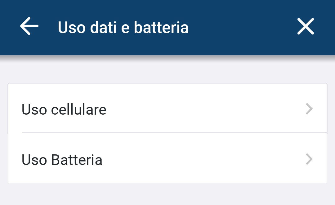 Tocca Opzioni > Uso dati e Batteria per visualizzare la schermata Dati e Batteria.