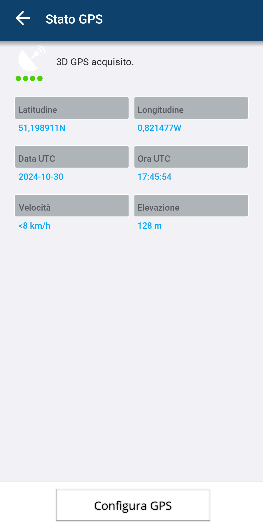 - Tocca Configura GPS per specificare il ricevitore GPS.