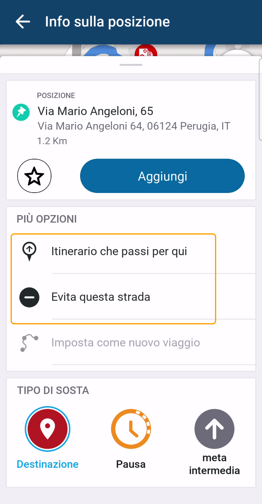- Sotto PIU' OPZIONI, tocca Itinerario che passi per qui o Evita Questa Strada.